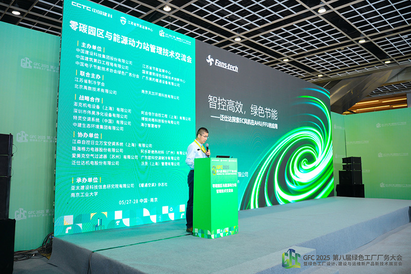 On May 28, at the Zero Carbon Park and Energy Power Station Management Technical Exchange Meeting, Peng Libo, Technical Support Manager at Fans-tech, delivered a keynote speech titled “Intelligent Control for Efficiency, Green Energy Saving: Fans-tech Explores the Application of EC Fans in AHU/FFU.”